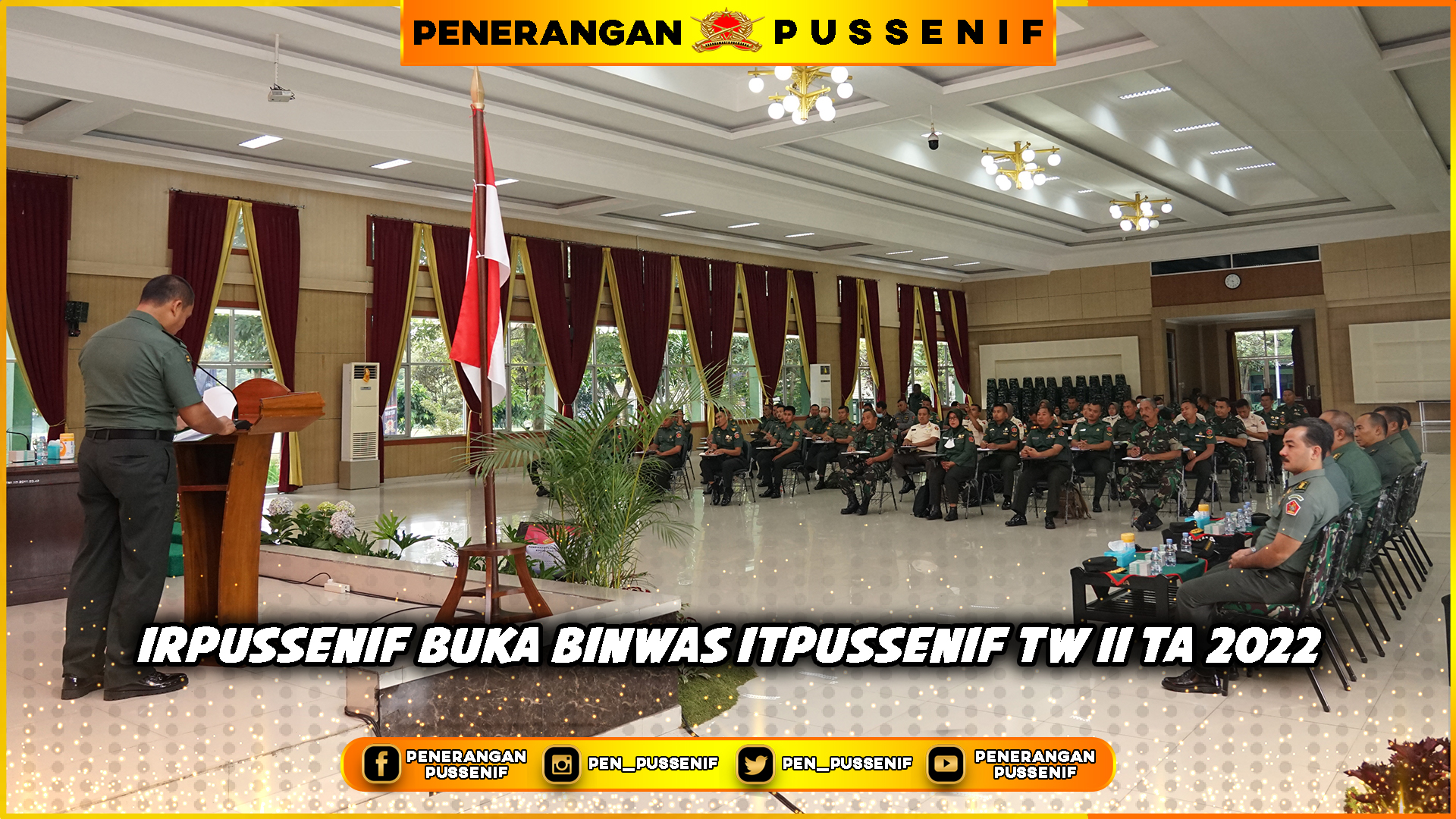 Inspektorat Pussenif Brigjen TNI Sugiyono membuka kegiatan Pembinaan Pengawasan (Binwas) Itpussenif Kodiklatad TW III TA 2022 bertempat di Graha yudha wastu pramukha, Kamis, (22/09/2022). Adapun kegiatan tersebut membahas tentang sosialisasi administrasi kelengkapan pertanggungjawaban keuangan dan sosialisasi bidang kinerja oleh pemateri Kapten Cku (K) Tuti Damayanti dan Letkol Inf Maman Ali Mukhtar, S.I.P.