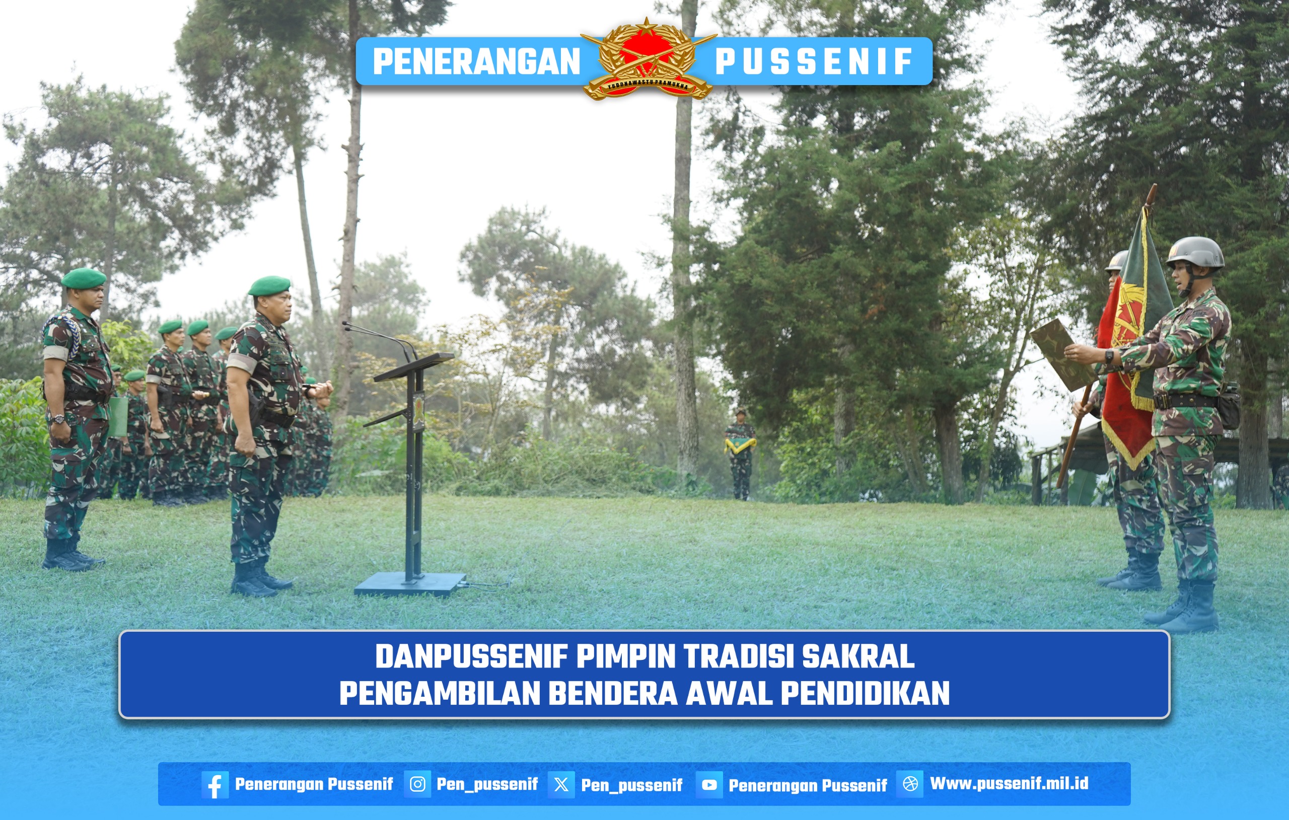 Pussenif menggelar upacara bendera sebagai salah satu program rutinitas yang dilaksanakan setiap bulan, kegiatan ini berlangsung dilapangan Wirottama Pussenif, Bandung (24/06/2024).