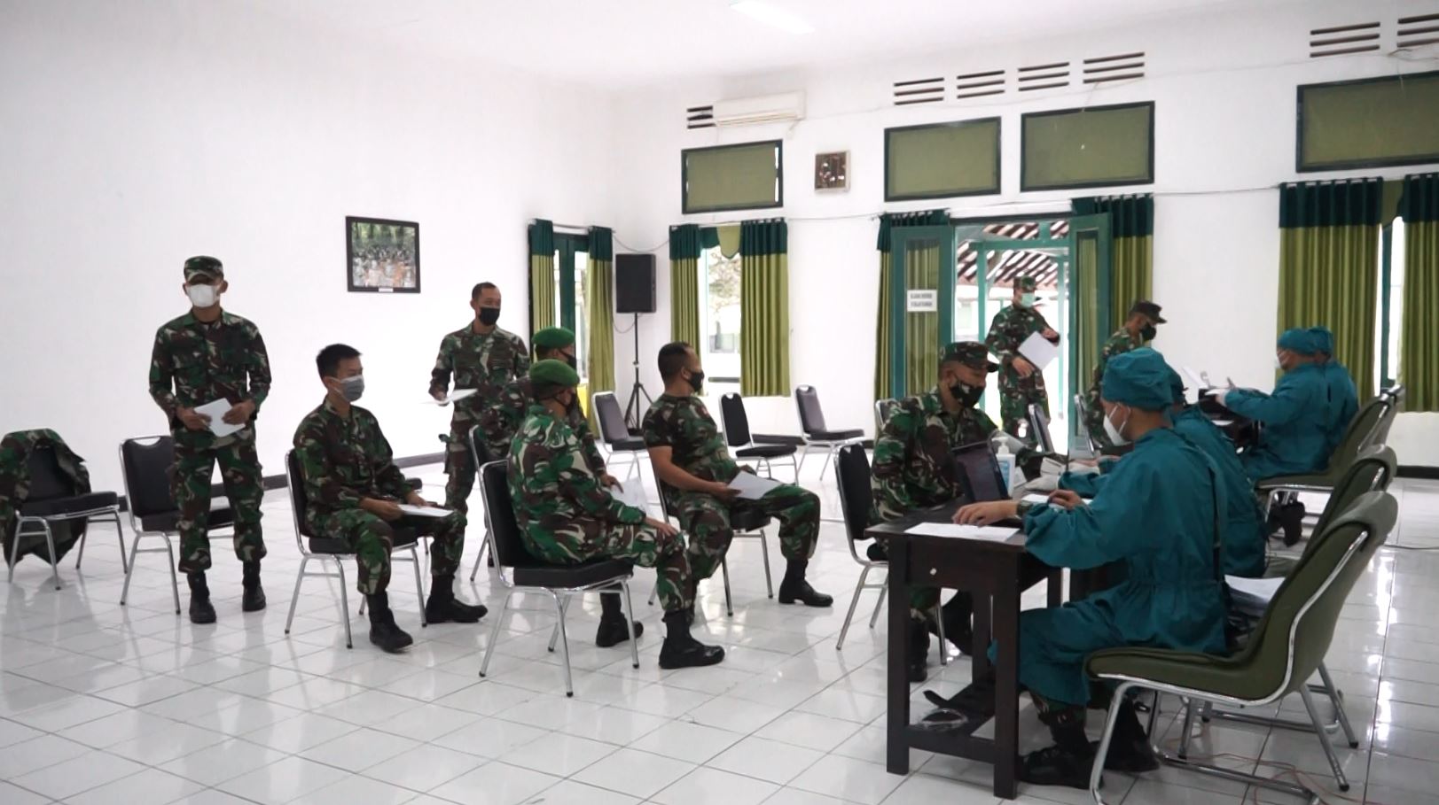 PUSSENIF, BANDUNG - Jajaran Pussenif Kodiklatad menjalani vaksinasi Covid-19 tahap pertama di aula Da’an Mogot Pusdikif-Pussenif Jalan Supratman No. 60, Kota Bandung, Jabar, pada Selasa (02/03/2021).