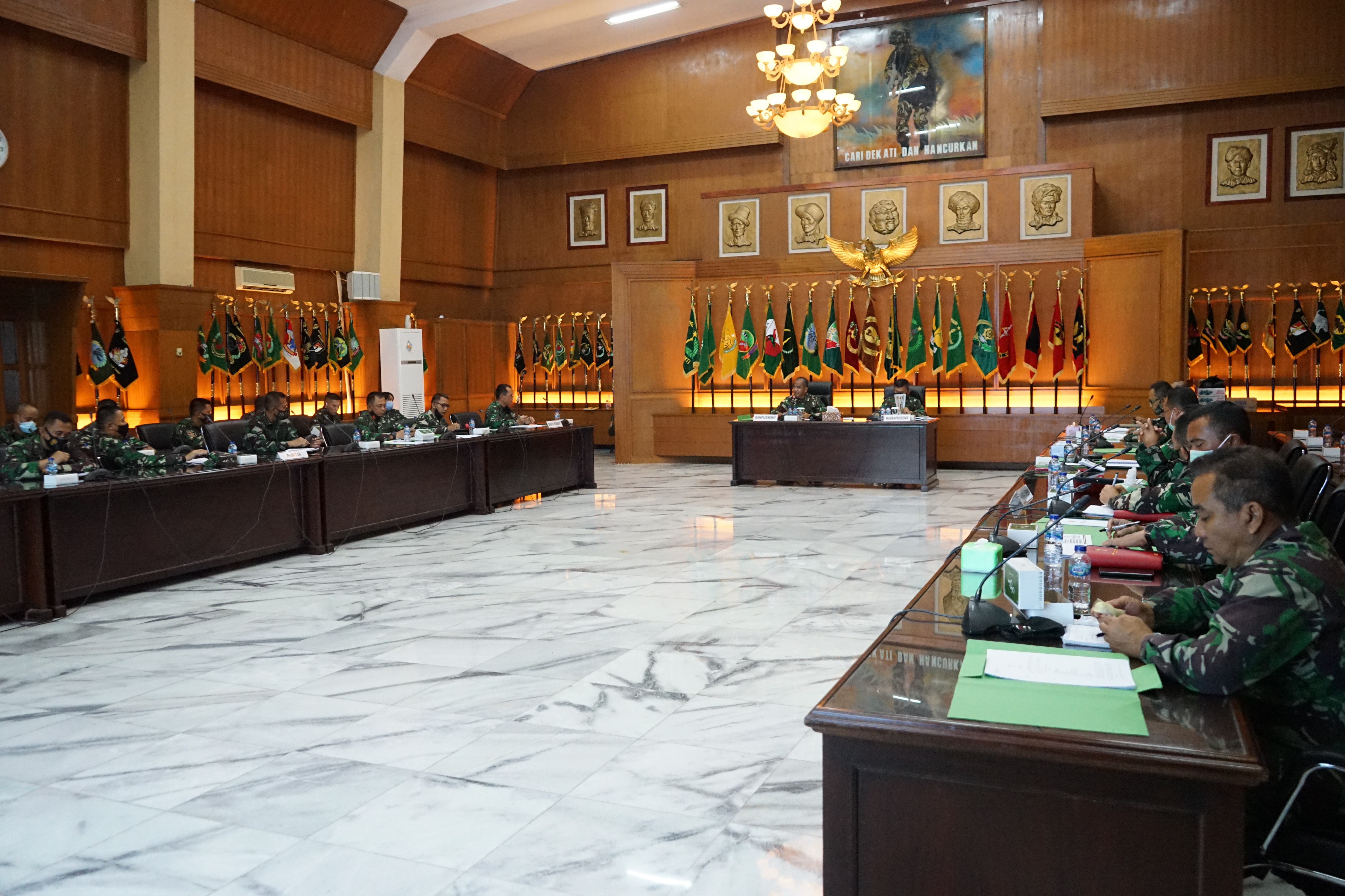 Pussenif – Bandung, Danpussenif Letjen TNI Arif Rahman, M.A., menerima paparan Rencana Garis Besar (RGB) Rapat Pembinaan Teknis Kecabangan Infanteri (Rabinniscabif) yang disampaikan oleh Dirsen Pussenif Brigjen TNI Iman Budiman, di ruang ahmad yani Mapussenif pada, Rabu (24/02/2021).