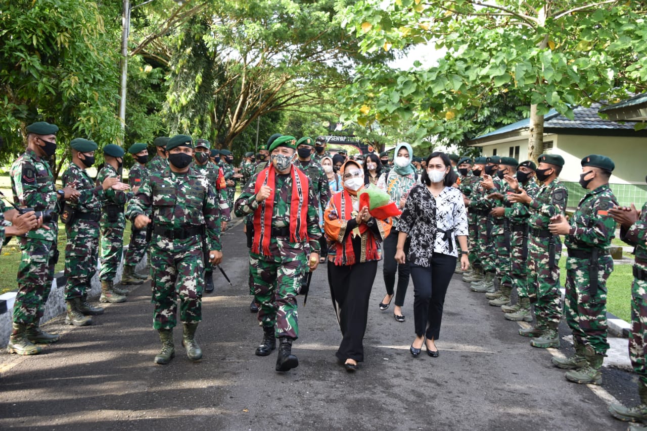 Ambon. Komandan Pusat Kesenjataan Infanteri (Danpussenif) Letjen TNI Besar Harto Karyawan, S.E.,M.Tr. (Han) memberikan pembekalan kepada prajurit Yonif Raider 733/Masariku dan Seluruh Perwira Infanteri jajaran Kodam XVI/Pattimura di Mako Yonif Raider 733/Masariku Jln. Laksdya Leo Wattimena, Waiheru Ambon, Kamis 10 Desember 2020.