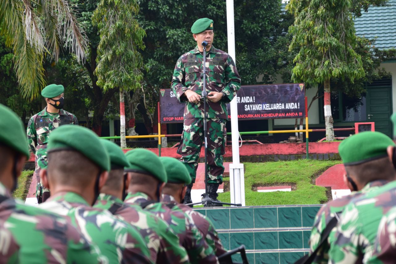 Danpussenif Letjen TNI Besar Harto Karyawan, S.H., M.Tr. (Han) beserta empat (4) orang rombongan melaksanakan kunjungan ke Yonif 133/Yudha Sakti pada hari Selasa (10/11/2020) yang bertempat di Air Tawar, Padang, Sumatera Barat. Lawatan ini dalam rangka kunjungan kerja Danpussenif Kodiklatad ke satuan infanteri jajaran Kodam I/BB untuk pengendalian pengawasan dan evaluasi pembinaan satuan. Danpussenif dan rombongan menerima paparan satuan oleh Danyonif 133/YS Letkol Inf Hendra Cipta, S.Sos. Kemudian anggota tim Wasdalev melaksanakan pengecekan produk Binsat Yonif 133/YS.