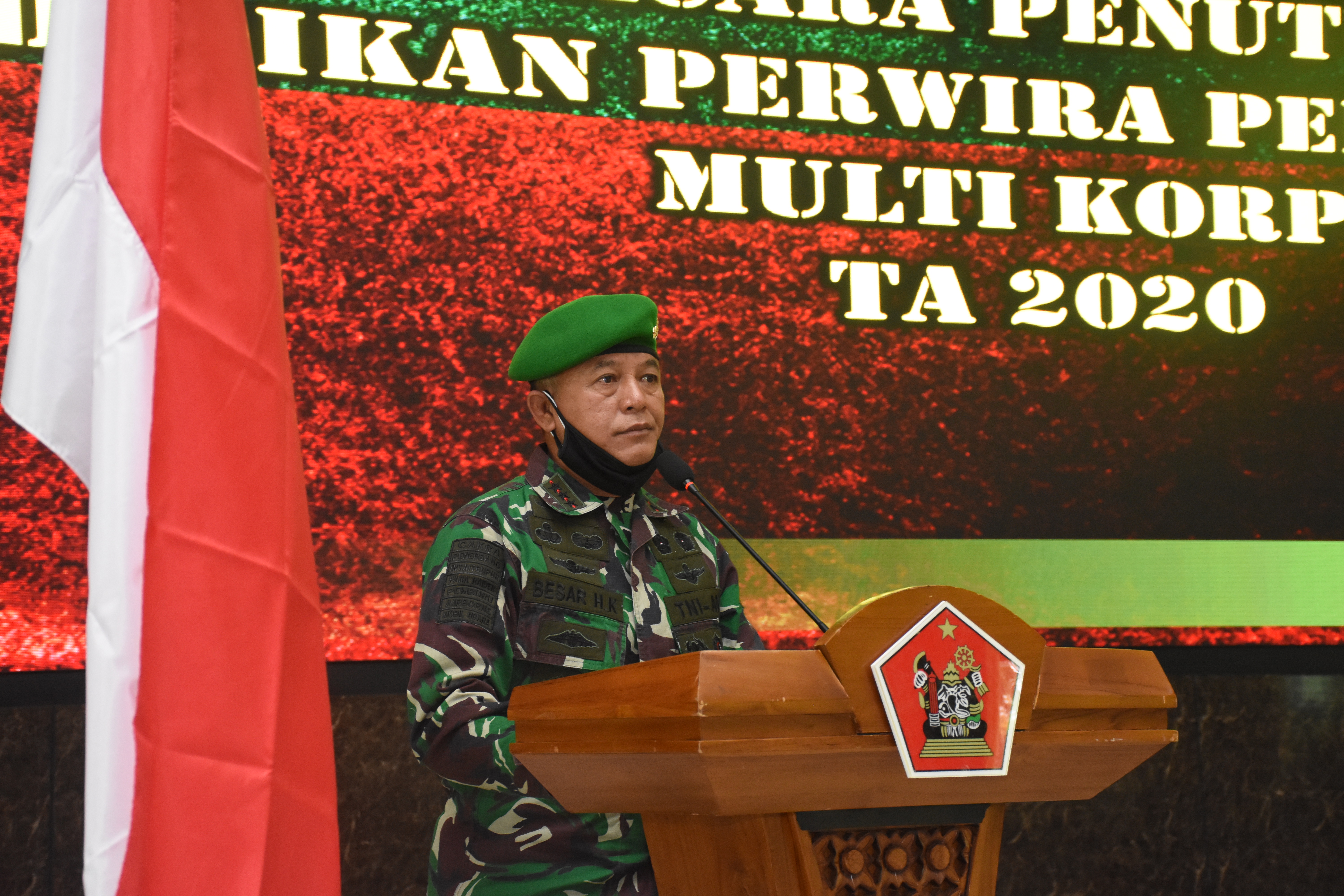 Penutupan Dikpatih Tahap I MK TA 2020 Oleh Danpussenif Letjen TNI Besar Harto Karyawan, S.H., M.Tr.(Han) Di Gedung Graha Yudhawastu Pramuka. Dalam Amanatnya Disampaikan Penekanan Sebagai Berikut.