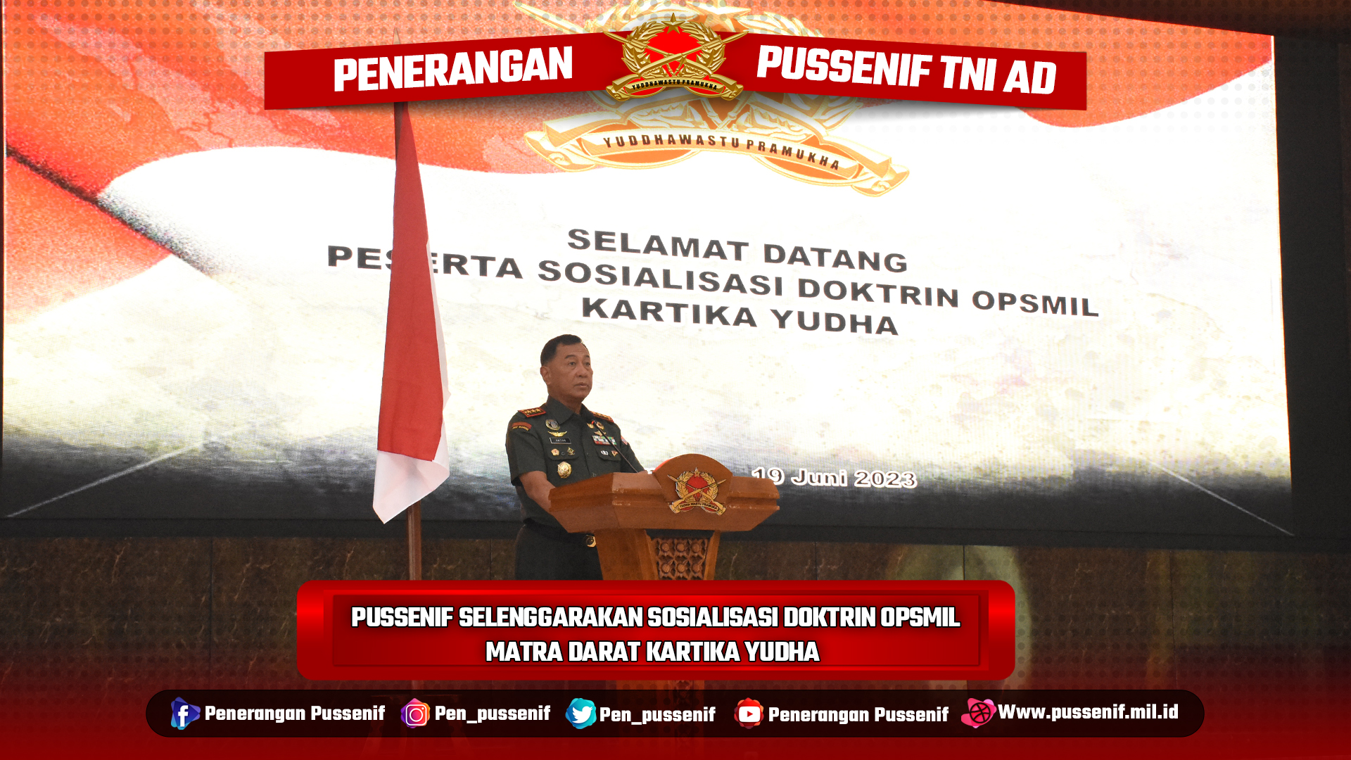 Komandan Pusat Kesenjataan Infanteri Letjen TNI Dr. Anton Nugroho, M.M.D.S., M.A. mempimpin serah terima jabatan pejabat Direktur Pembinaan Latihan (Dirbinlat) dan Pamen Ahli Bidang Idpol Pussenif, di Aula Jenderal A. Yani, Kamis (06/07/2023).