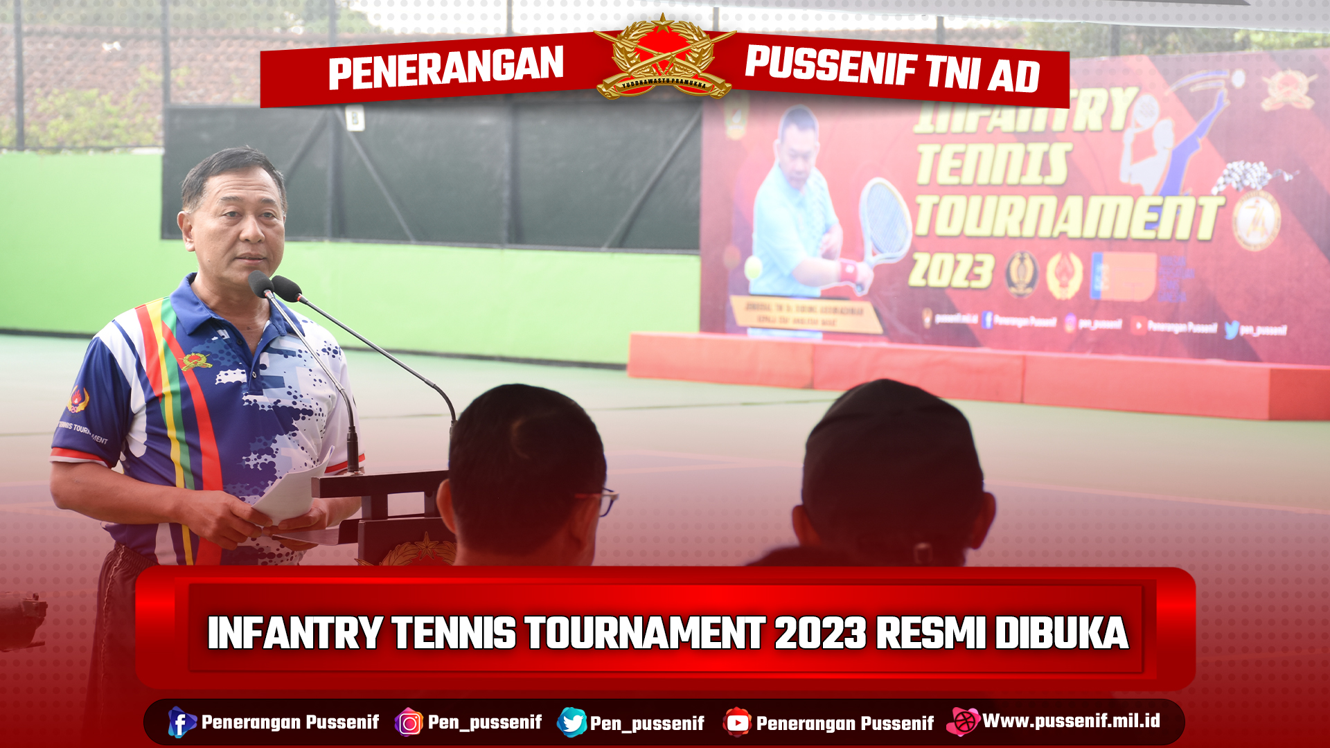 Komandan Pusat Kesenjataan Pussenif (Danpussenif) Mayjen TNI Dr. Anton Nugroho, M. M. D. S., M. A. Membuka INFANTRY TENNIS TOURNAMENT 2023 Di Lapangan Pussenif, Bandung. Sabtu (17/2/2023).