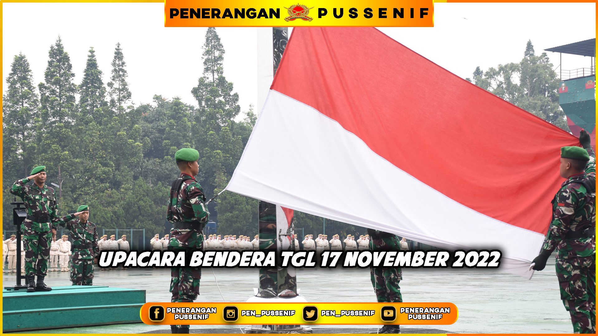 Pussenif melaksanakan Upacara Bendera 17an. Yang bertindak sebagai Irup Dirsen Pussenif Brigjen TNI Agus Saepul, S. Sos., M.M. bertempat di lapangan Wirotama Pusssenif, Kamis 17 November 2022.