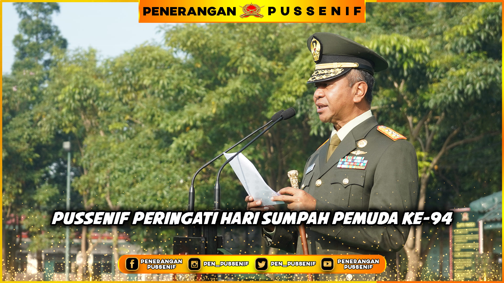 Organik Pussenif dan Pusdikif mengikuti upacara bendera dalam rangka memperingati Hari Sumpah Pemuda yang ke-94, bertempat di Lapangan Wirotama Pussenif, (28/10/2022). Komandan Pussenif Letjen TNI Arif Rahman, M.A. bertindak selaku inspekur upacara membacakan amanat Kemenpora yang menyampaikan bahwa peringatan hari Sumpah Pemuda ini adalah upaya bagi kita menghadirkan sejarah masa lalu untuk direnungkan, dipelajari, ditemukan kristalisasi pembelajaran kebaikan untuk dijadikan teladan dan inspirasi penggerak langkah menuju visi bangsa yang besar.