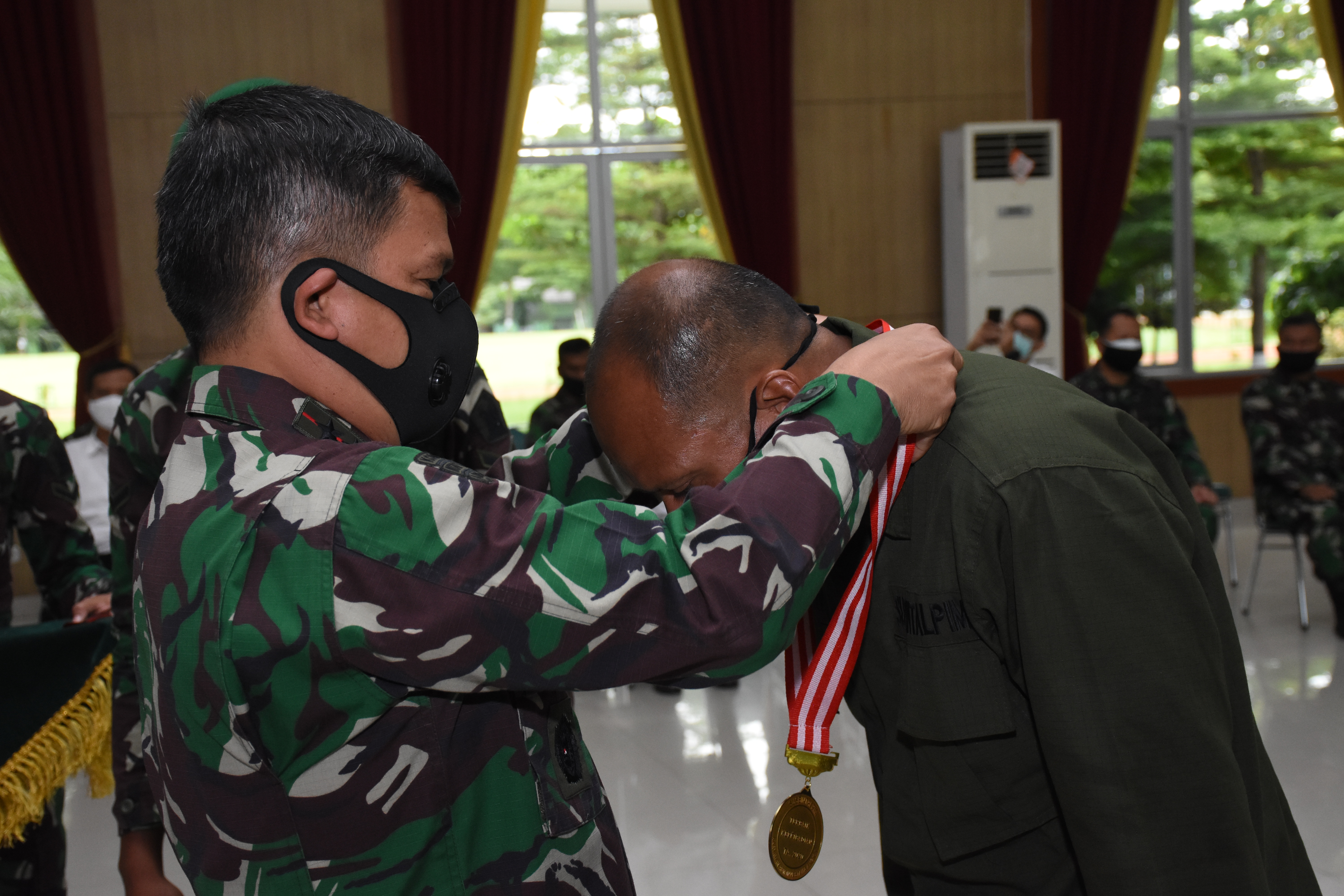 Bandung. Wadanpussenif Mayjen TNI A. Daniel Chardin, S.E., M.Si., menjadi Irup pada upacara penutupan pelatihan kursus pembinaan mental dan kepemimpinan karyawan ABM Investama di Gedung Grha Yudhawastu pramuka Pussenif, Senin (21/12/2020)