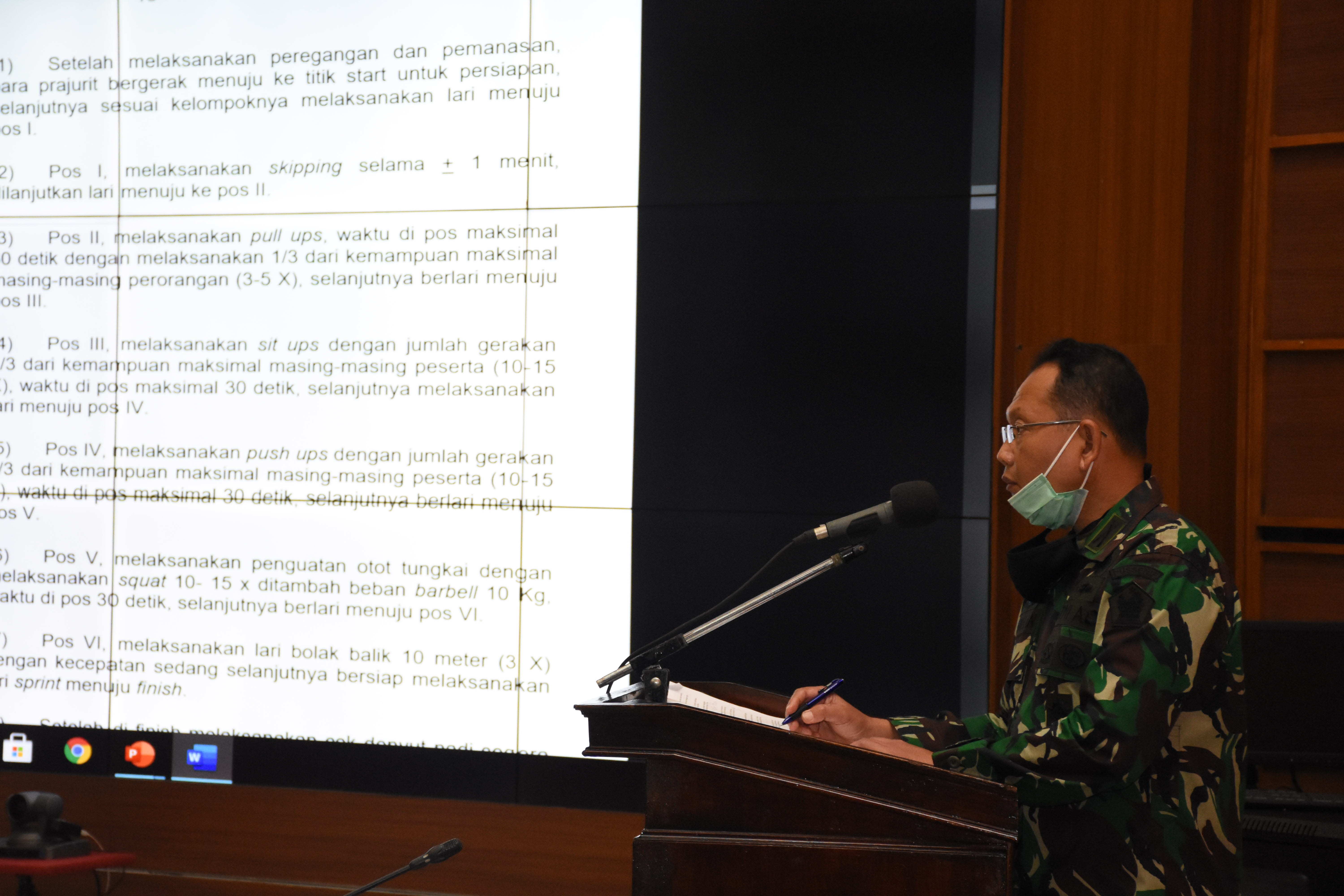 Bandung. Danpussenif Letjen TNI Besar Harto Karyawan, S.E.,M.Tr. (Han) memimpin acara Paparan Buku Pedoman Meningkatkan Kemampuan Dasar Prajurit Infanteri oleh Dirbindok Pussenif Kolonel Inf Nurkhan, S.E., M.M. di Gedung Ahmad Yani Makopussenif Bandung, Selasa (29/12/2020).