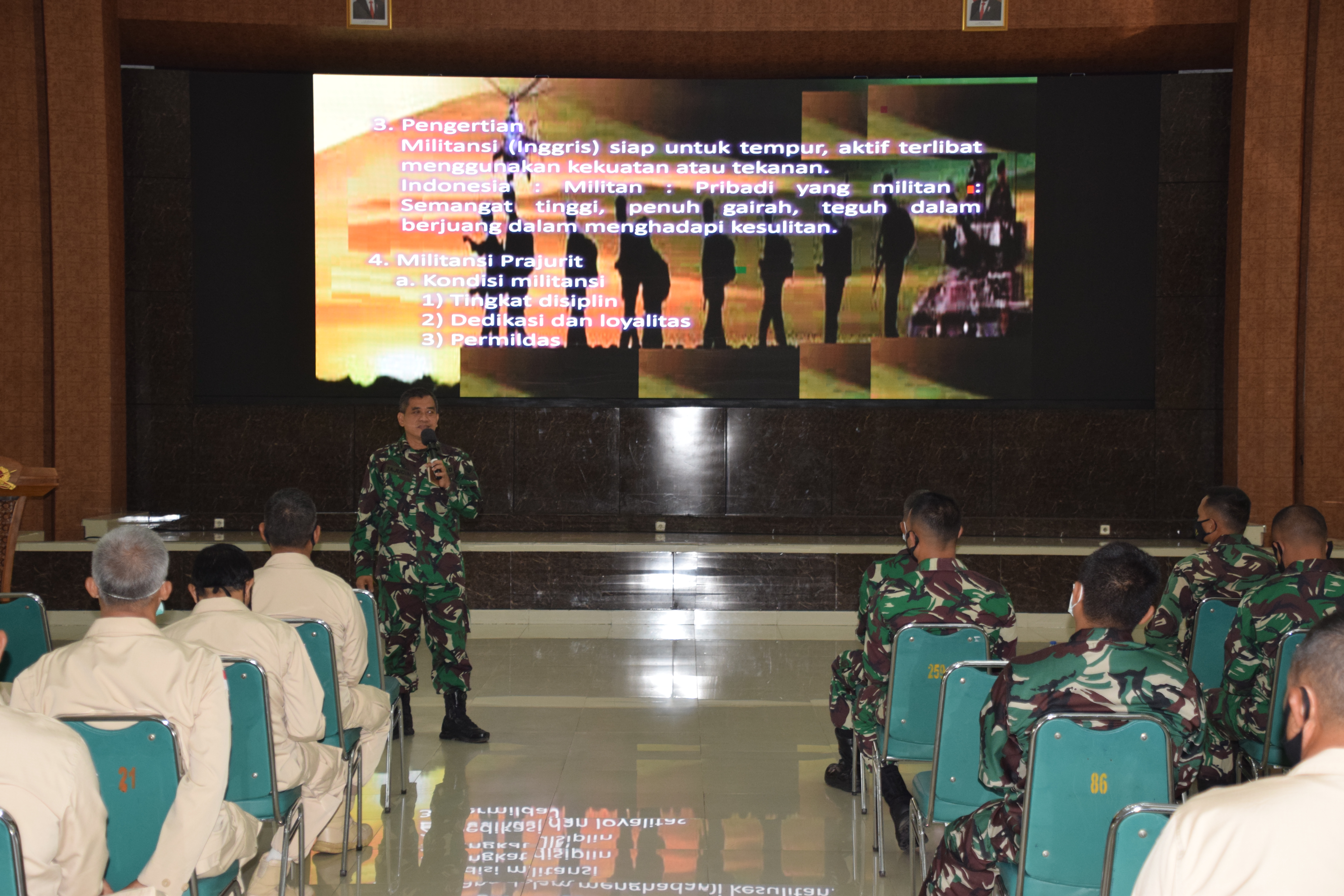 Bandung –, Prajurit dan PNS Pussenif-Pusdikif Kodiklatad mengikuti kegiatan Pembinaan mental ideologi kejuangan (Bintalidjuang). Bertempat di gedung Grha Yudha Wastu Pramuka Mapussenif, Selasa (02/03/2021).