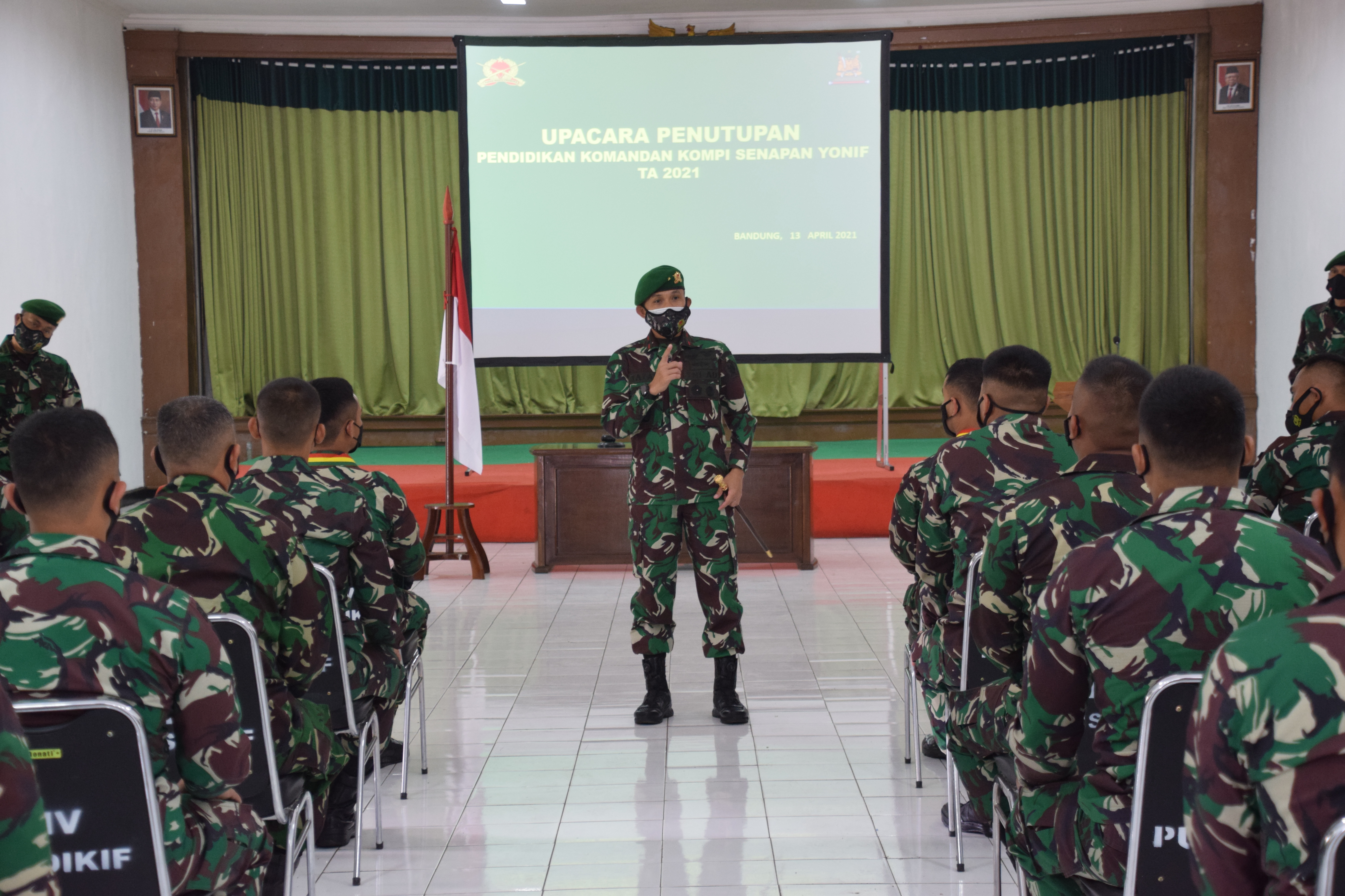 Bandung – pussenif.tni-ad.mil.id – Danpusdikif Brigjen TNI Tatan Ardianto, S.I.P., secara resmi menutup pendidikan Komandan Kompi Senapan Batalyon Infanteri (Dikdankipan Yonif) TA 2021 di aula Daan Mogot Pusdikif Pussenif Kodiklatad, Bandung, Selasa (13/04/2021).
