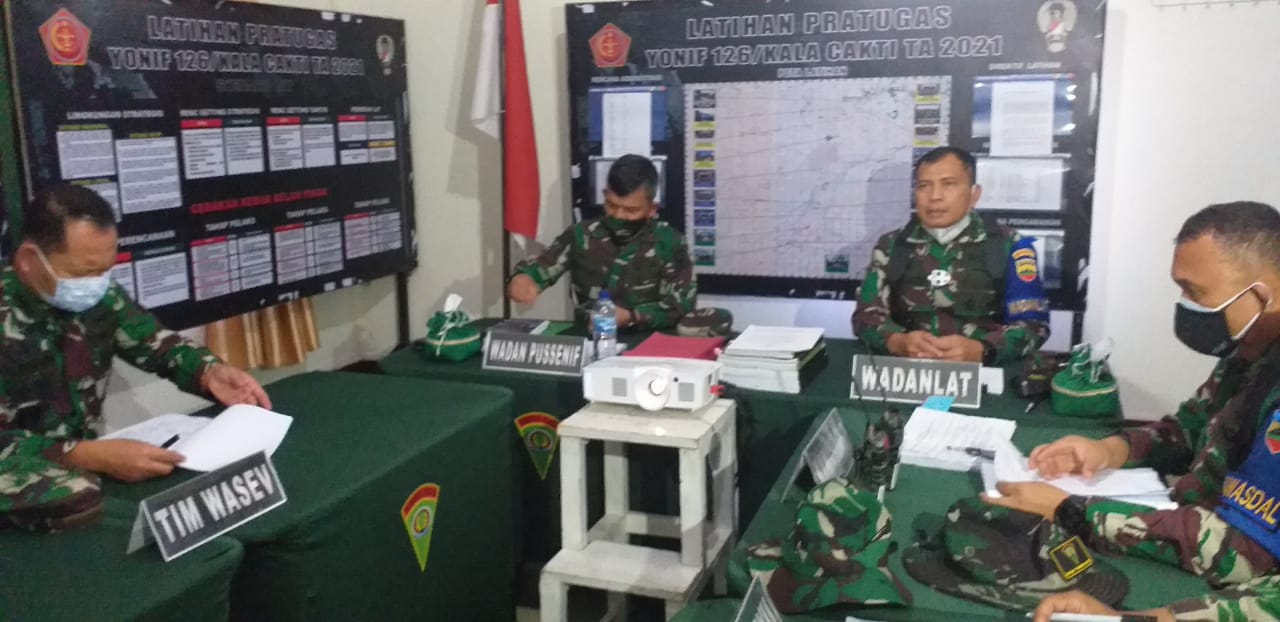 Sumatera utara – Pussenif.mil.id – Latihan Pratugas Operasi Pamtas darat Sektor Utara RI-PNG di wilayah Papua, Yonif 126/Kala Cakti menerima kunjungan Tim Asistensi Pengawasan Latihan (Aswaslat) dari Pussenif Kodiklatad yang dipimpin oleh Mayjen TNI A. Daniel Chardin, S.E., M.Si., di daerah latihan Desa Silinda, Kec. Silinda, Kab. Serdangbedagei (Sergei). Minggu, (3/10/2021)