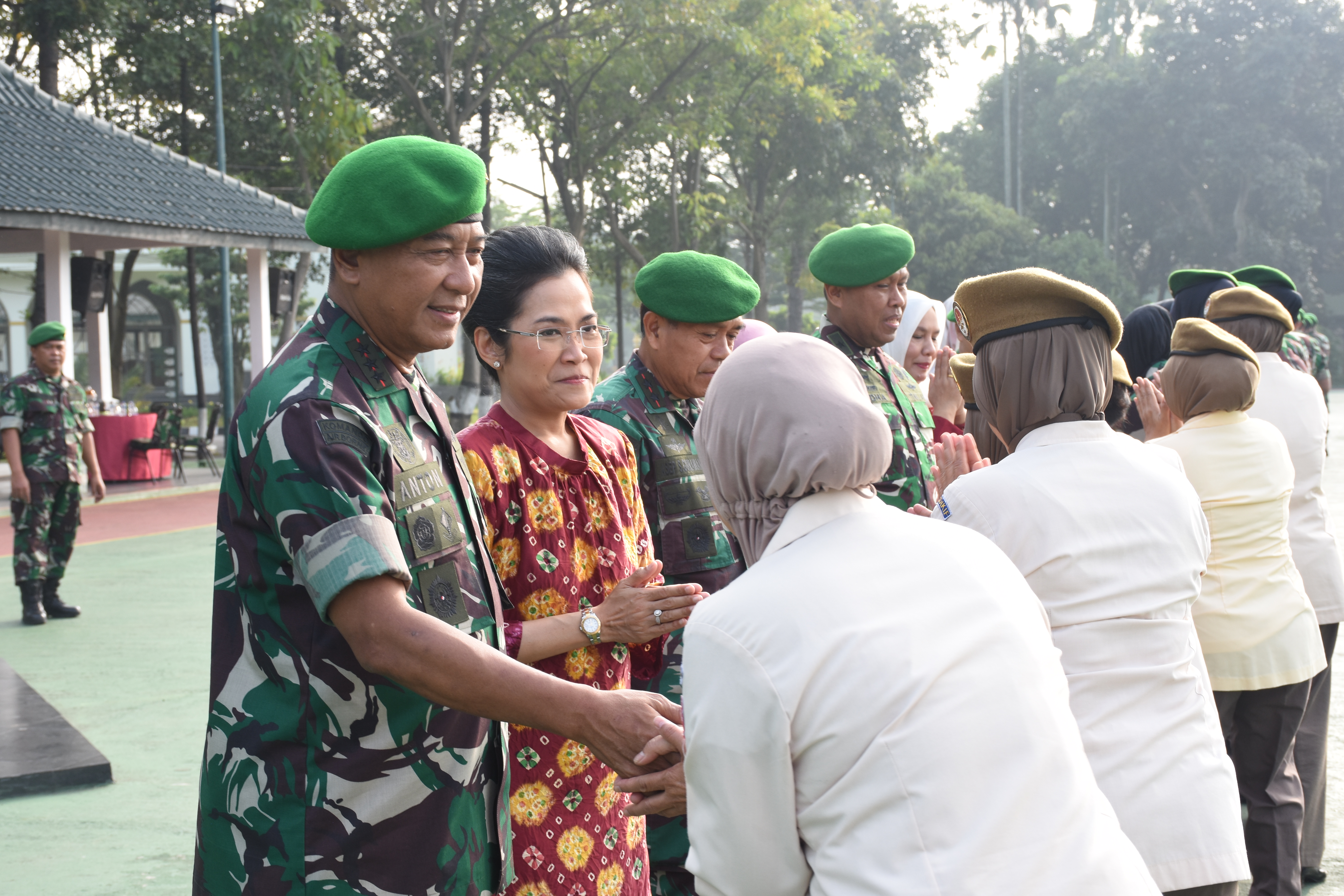 Hari Pertama Memulai Rutinitas Bertugas Setelah Merayakan Hari Raya Idul Fitri 1444 H, Komandan Pusat Kesenjataan Infanteri Letjen TNI Dr. Anton Nugroho, M. M. D. S., M. A. Didampingi Ketua Persit KCK Cabang BS Pussenif Ny. Yani Anton Nugroho Memimpin Acara Halal Bihalal Yang Digelar Di Lapangan Wirottama, Pussenif. Selasa (02/05/2023).