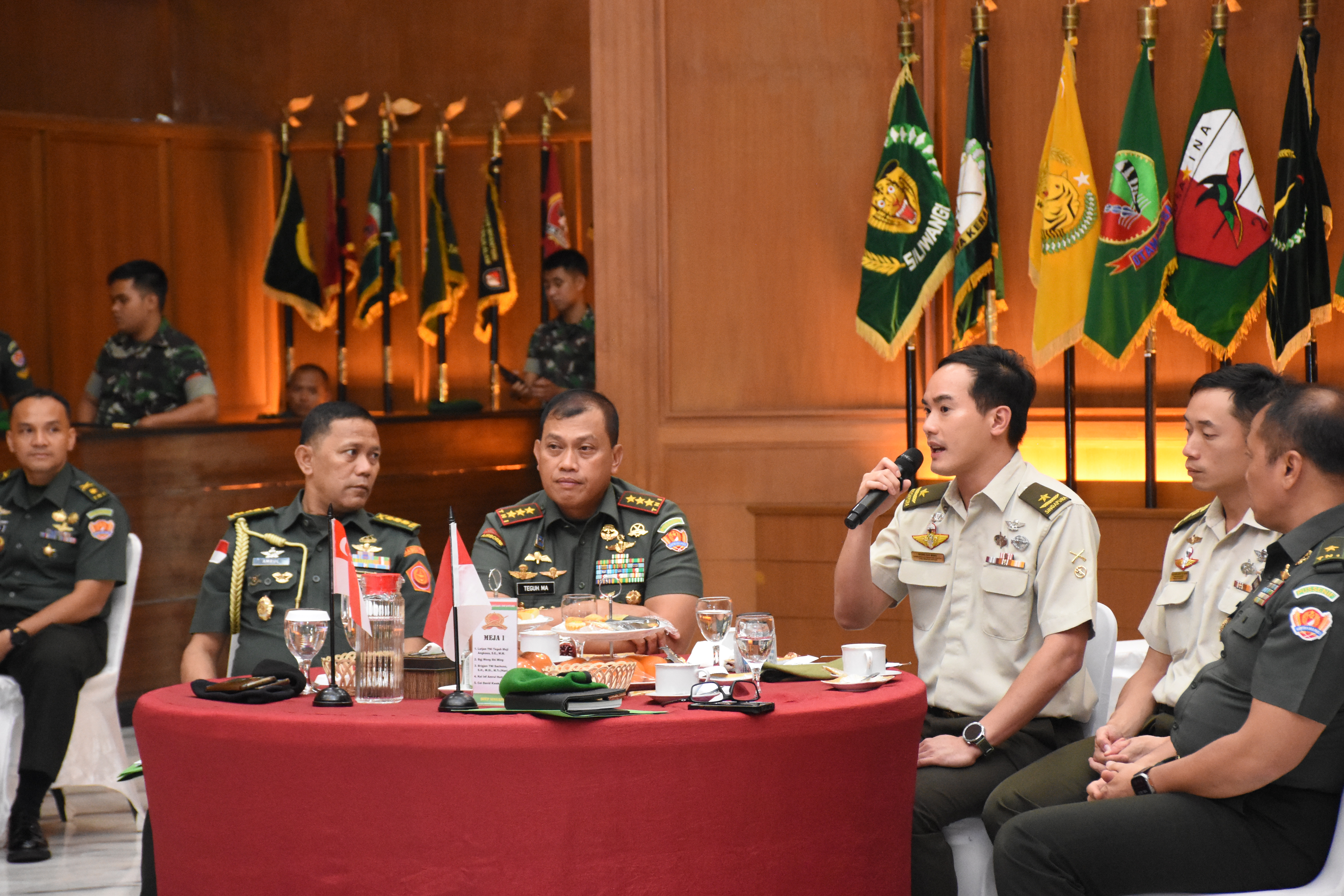 Delegasi Divisi Infanteri Ke-9 Angkatan Darat Singapura dipimpin oleh Brigadier General Wong Shi Ming bersama 4 orang lainnya disambut oleh Danpussenif Letjen TNI Teguh Muji Angkasa, S.E., M.M. beserta para Pejabat Utama Pussenif.